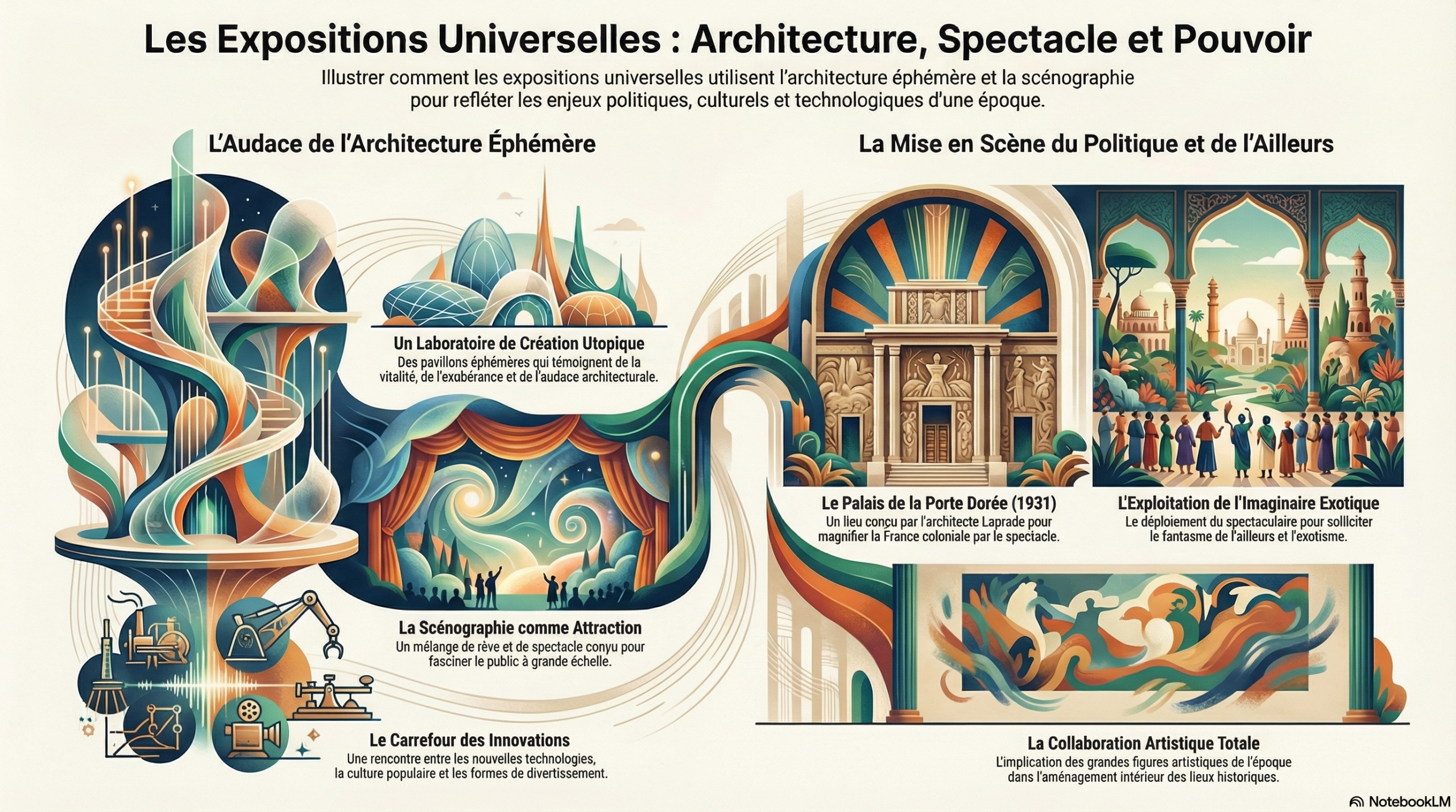 À la fois exercice architectural, levier urbanistique et exposition d’arts, les expositions universelles sont des vitrines de l’innovation.