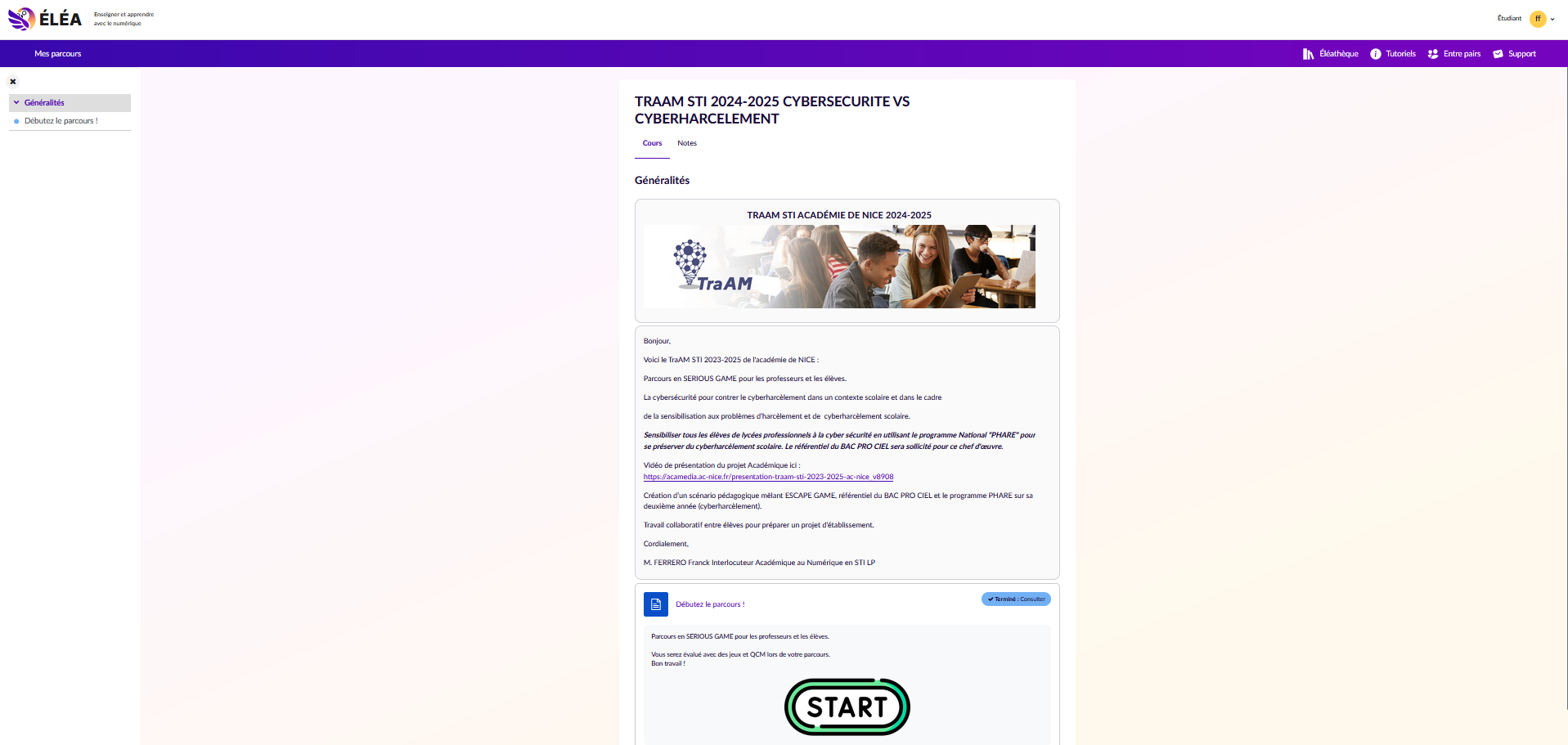 Ceci permettra aux professeurs et aux élèves d’accéder au parcours depuis leur ENT (Atrium concernant les lycées dans l’Académie de Nice et Aix-Marseille) :